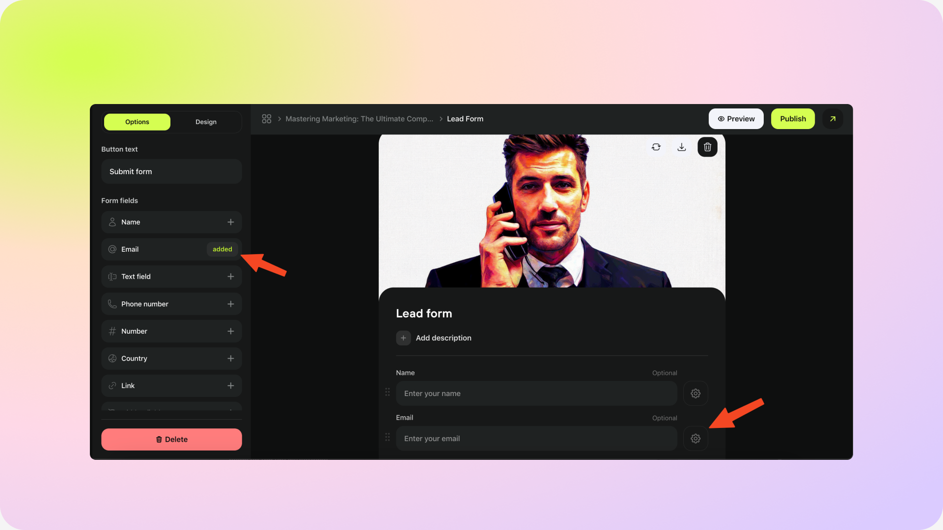 Add a Lead form to your challenge, if it hasn’t beed added yet